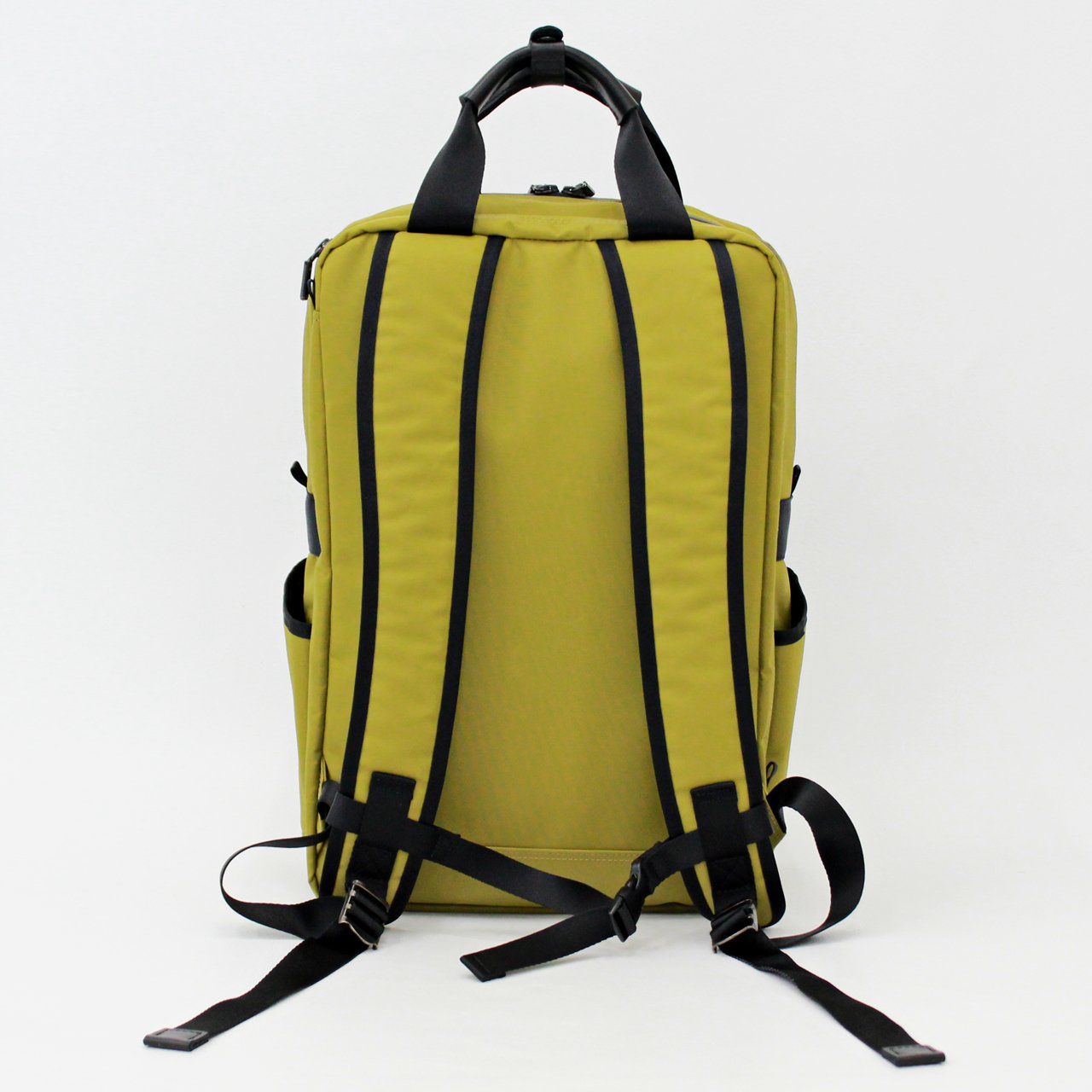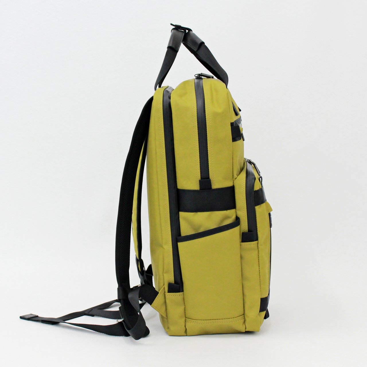 表生地は420dのナイロンオックスを使用しています。表面には高性能な撥水効果がある「Teflon™(テフロン)」加工を施し、裏面に0.2mm厚のPVCをボンディング加工することにより強度と防水性を高めています。