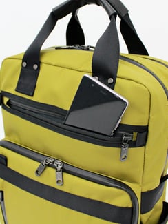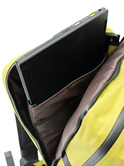 ノートパソコンやスマートフォンなどを収納するポケットの生地は導電性繊維「 Belltron®(ベルトロン)」を使用した静電気防止素材「 Doden®(ドーデン)」を採用。荷物の出し入れなどの摩擦や冬季の乾燥などにより発生した静電気は生地に帯電し、電子機器へ悪影響を及ぼす可能性があります。ドーデンは、その静電気をコロナ放電により抑制し取り除きます。