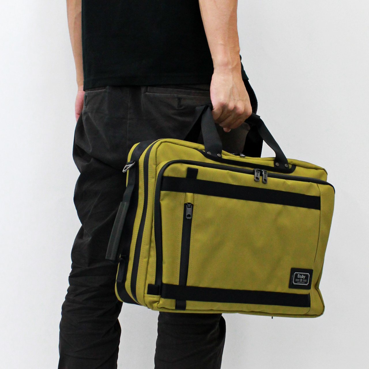 使用状況やスタイルに合わせて、ブリーフ、ショルダー、バックパックと3通りの使い方ができます。