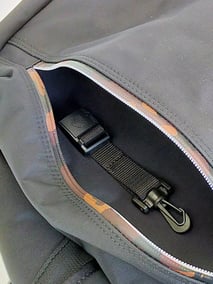 DELFY®, a waterproof and repellent fabric made from Toray's advanced technology, was adopted as the surface fabric. Nylon yarn with 70d aznd 280d tack, which is resistant to tension and friction, is used. The front surface is subjected to excellent water-repellent processing to repel rain, and the back surface is bonded with 0.2mm thick PVC to enhance its strength and waterproofness.
